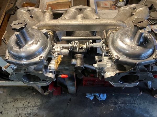 Een set gereviseerde Stromberg carburateurs voor de Triumph TR6